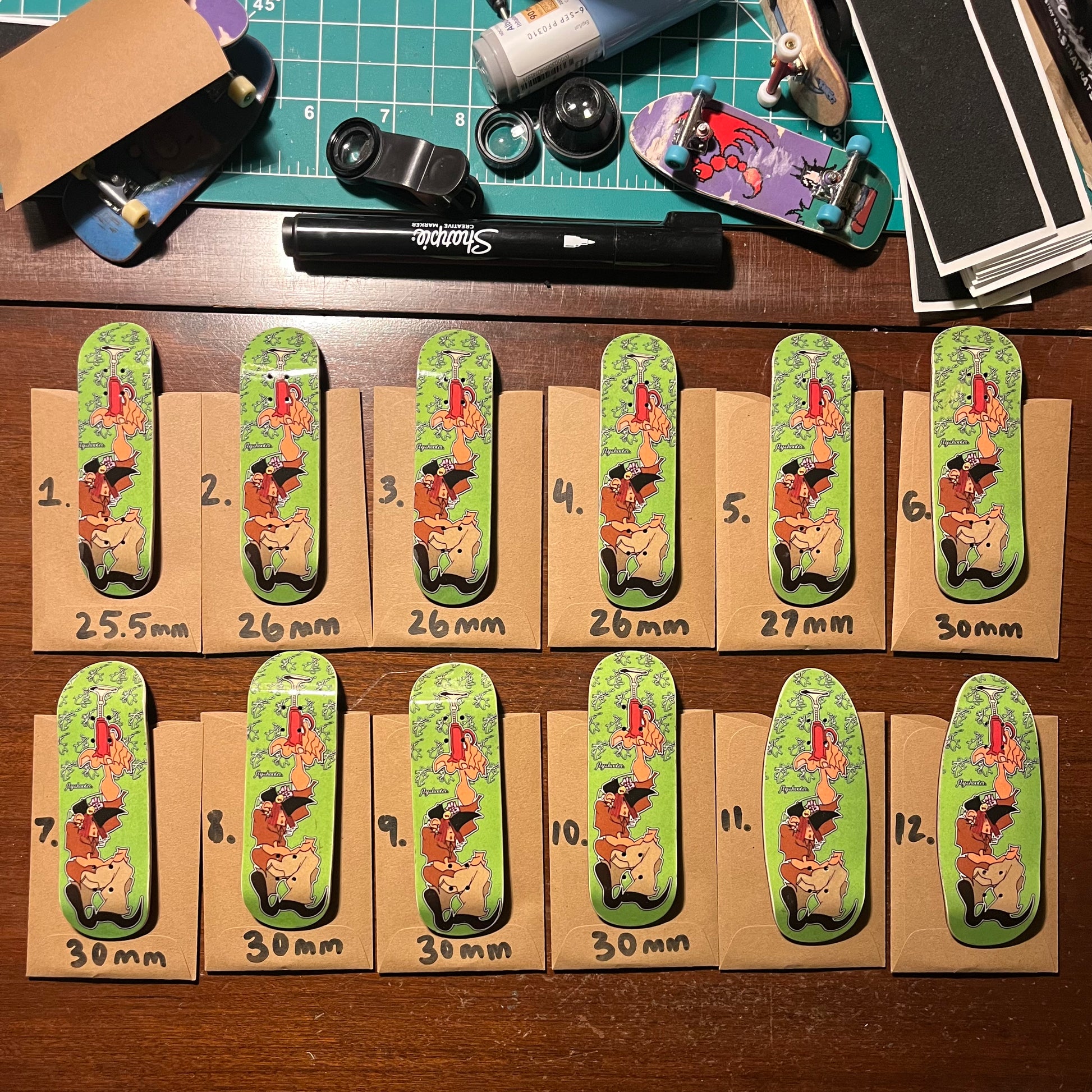 decks 11-12 are shaped boards will fit 29mm trucks.